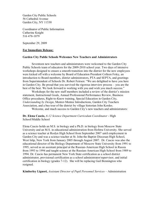 Garden City Public Schools Welcome New Teachers Garden City Ny Patch